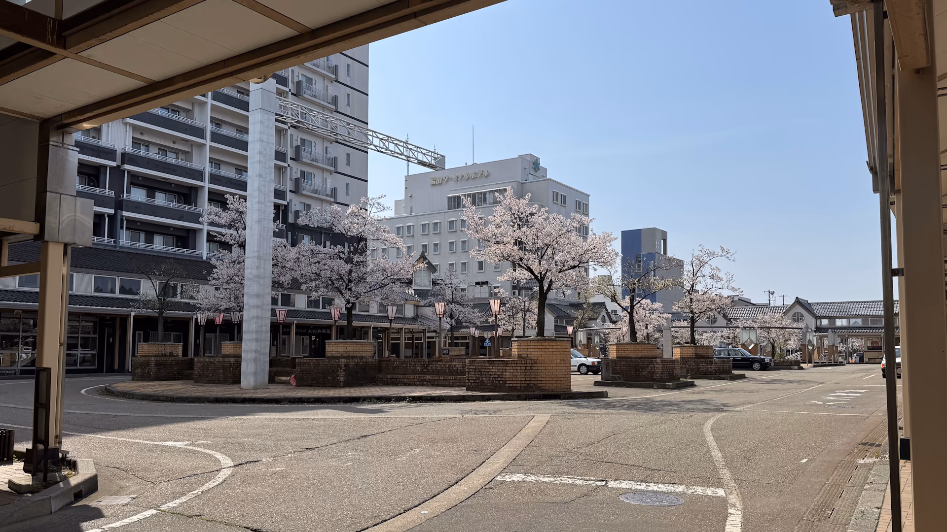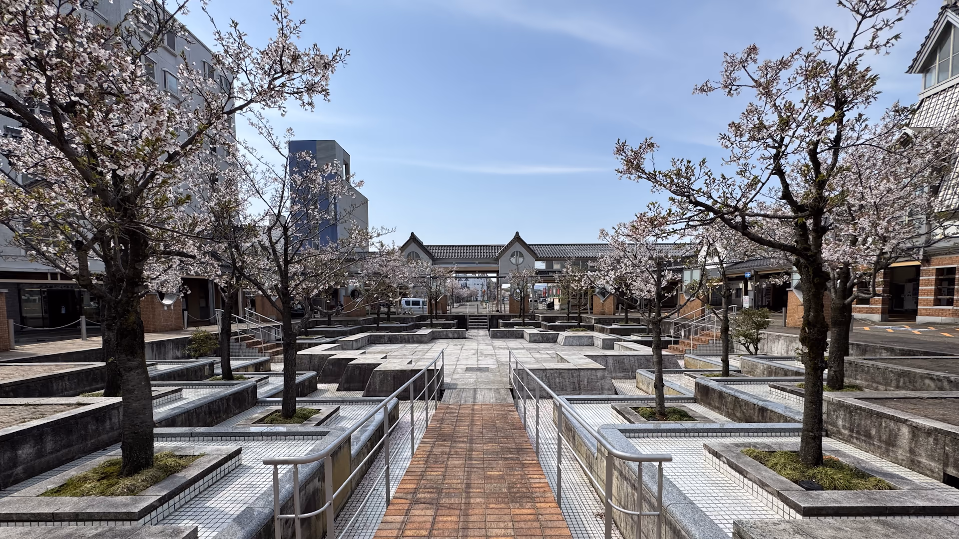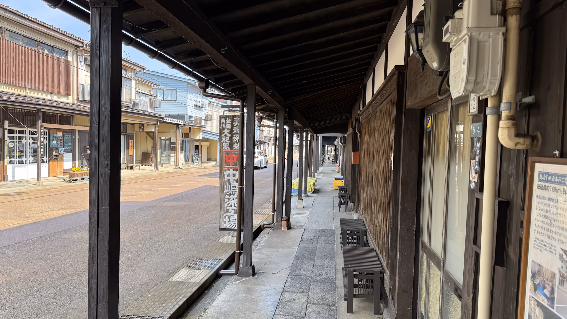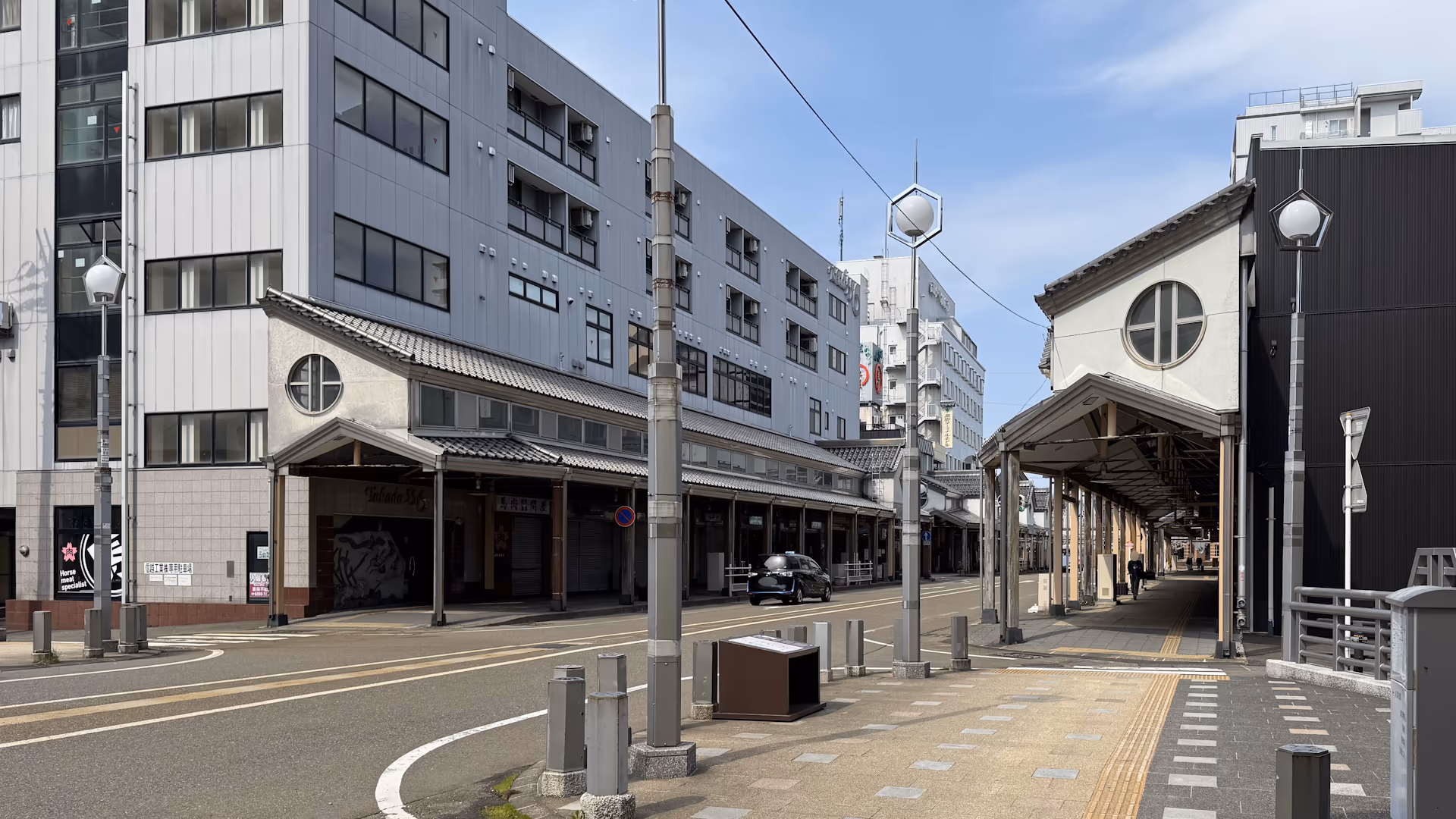 ちなみに、駅前のアーケードは雁木ではなく、雁木に見えるアーケードになっています。よく見ると一体化しておらず、アーケードだけで独立した建物になっています。