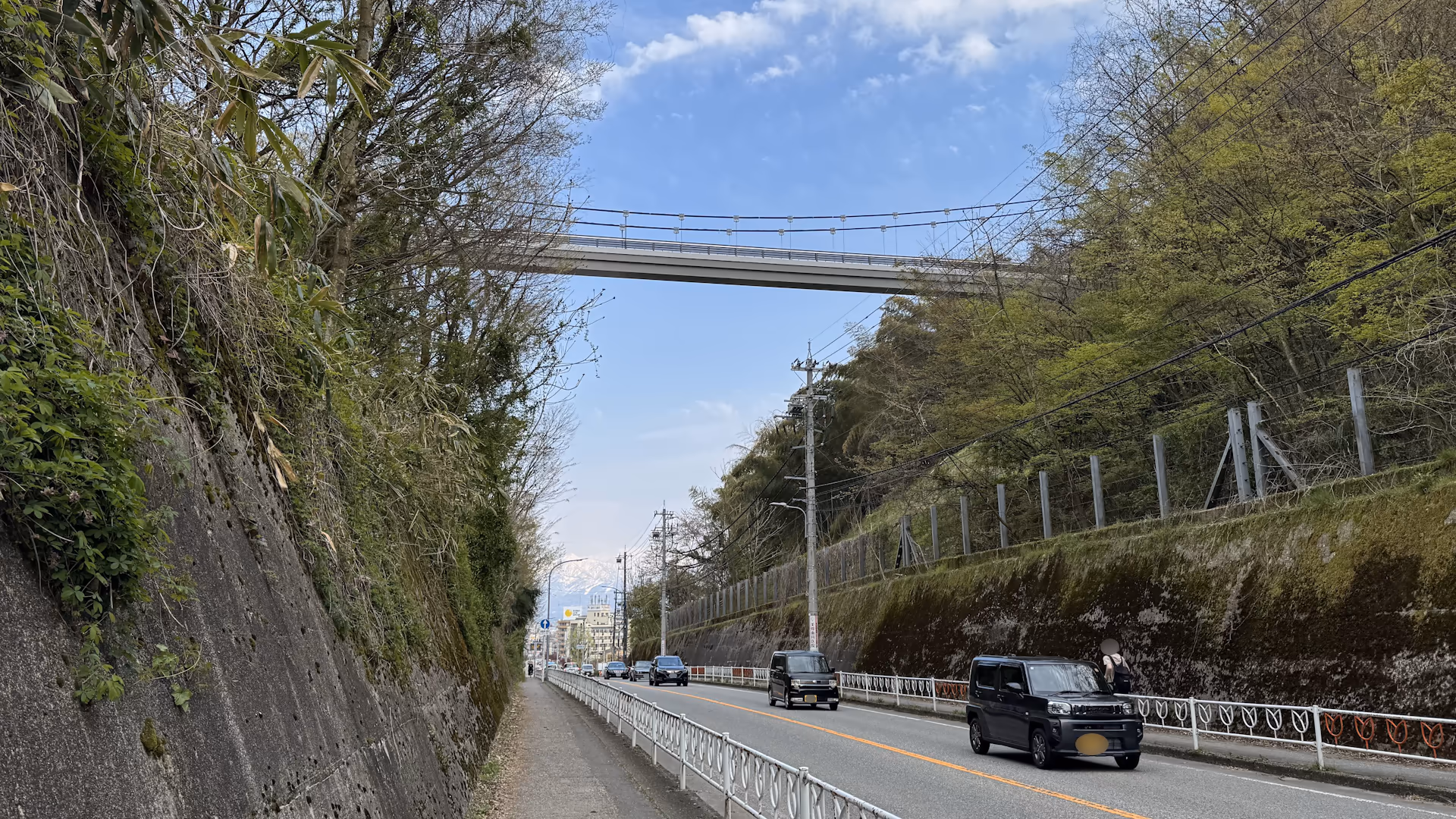 まだまだ時間があるので、そのままの足で呉羽山へ行ってみます。そこまで高低差はありませんが、気温が高いのでちょっと大変ですね。歩道の路面状態はあまり良くありません。