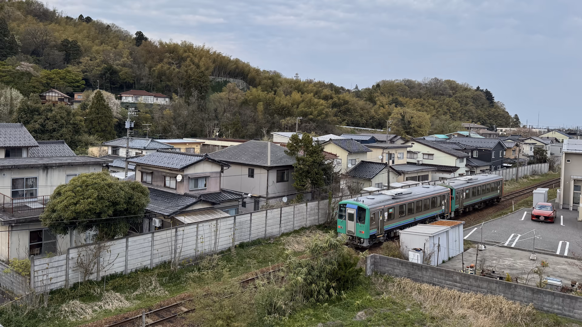 踏切の警報音が聞こえてきたので目を向けてみたら、高山本線の列車が通過していくのが見えました。先日の大糸線でも使用されている、あの折戸の車両がここでも使われているようですね。