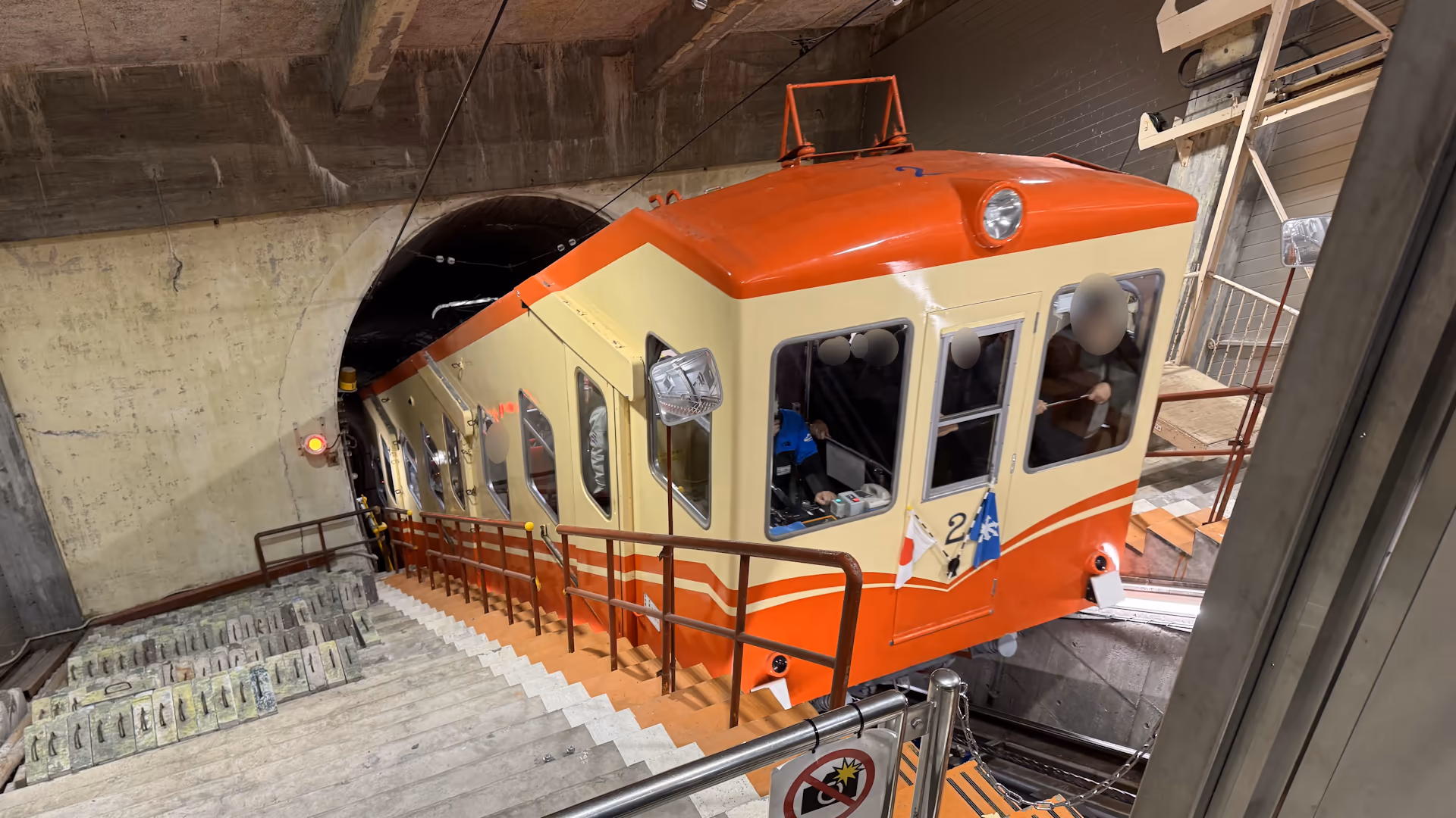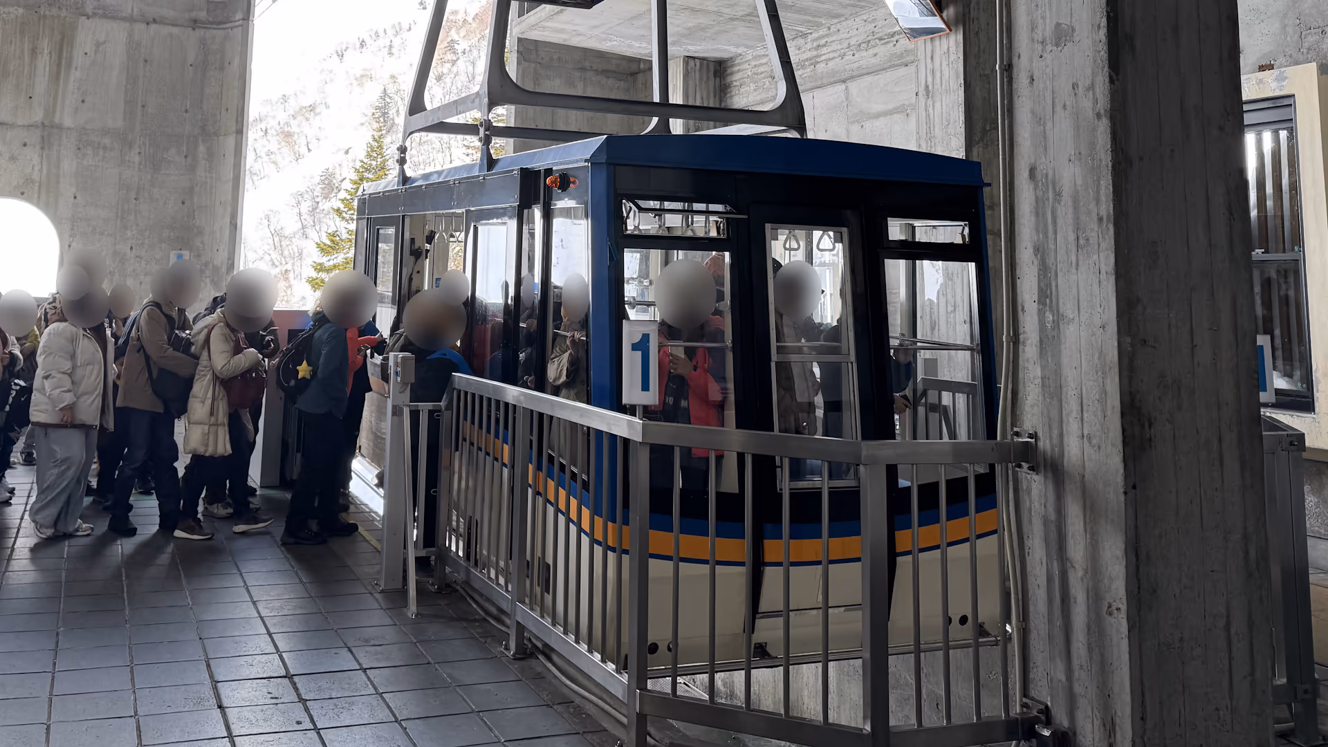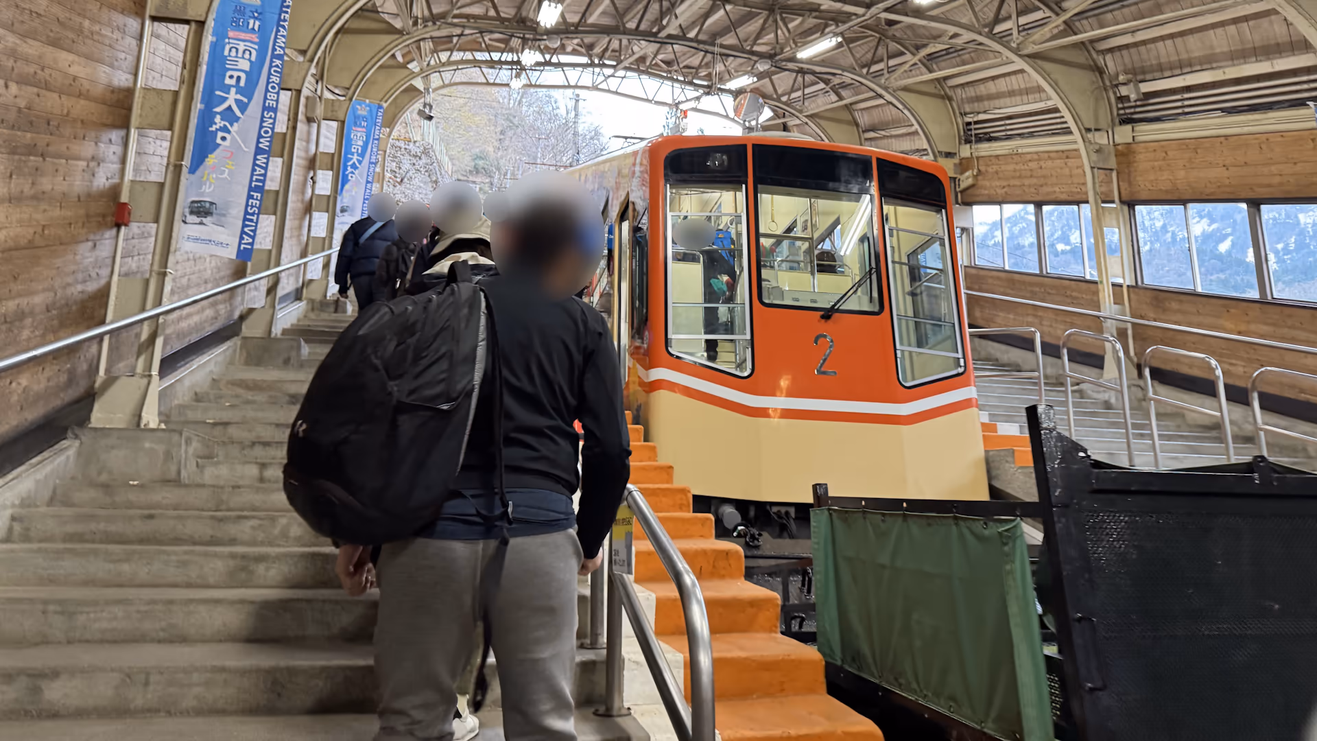 箱根以来の人生2度目のケーブルカー。特徴として、荷物を載せるためのかごが付いています。