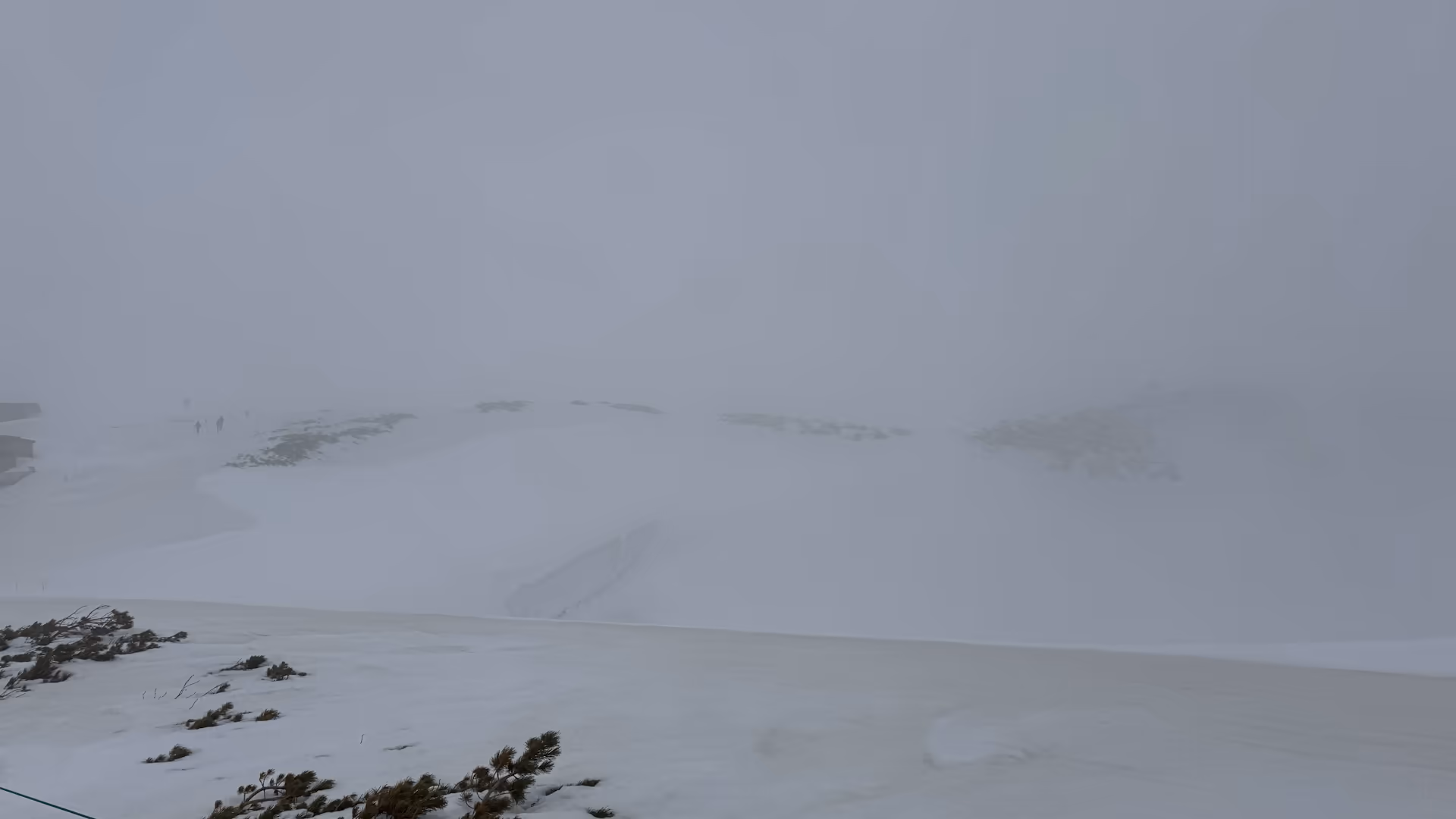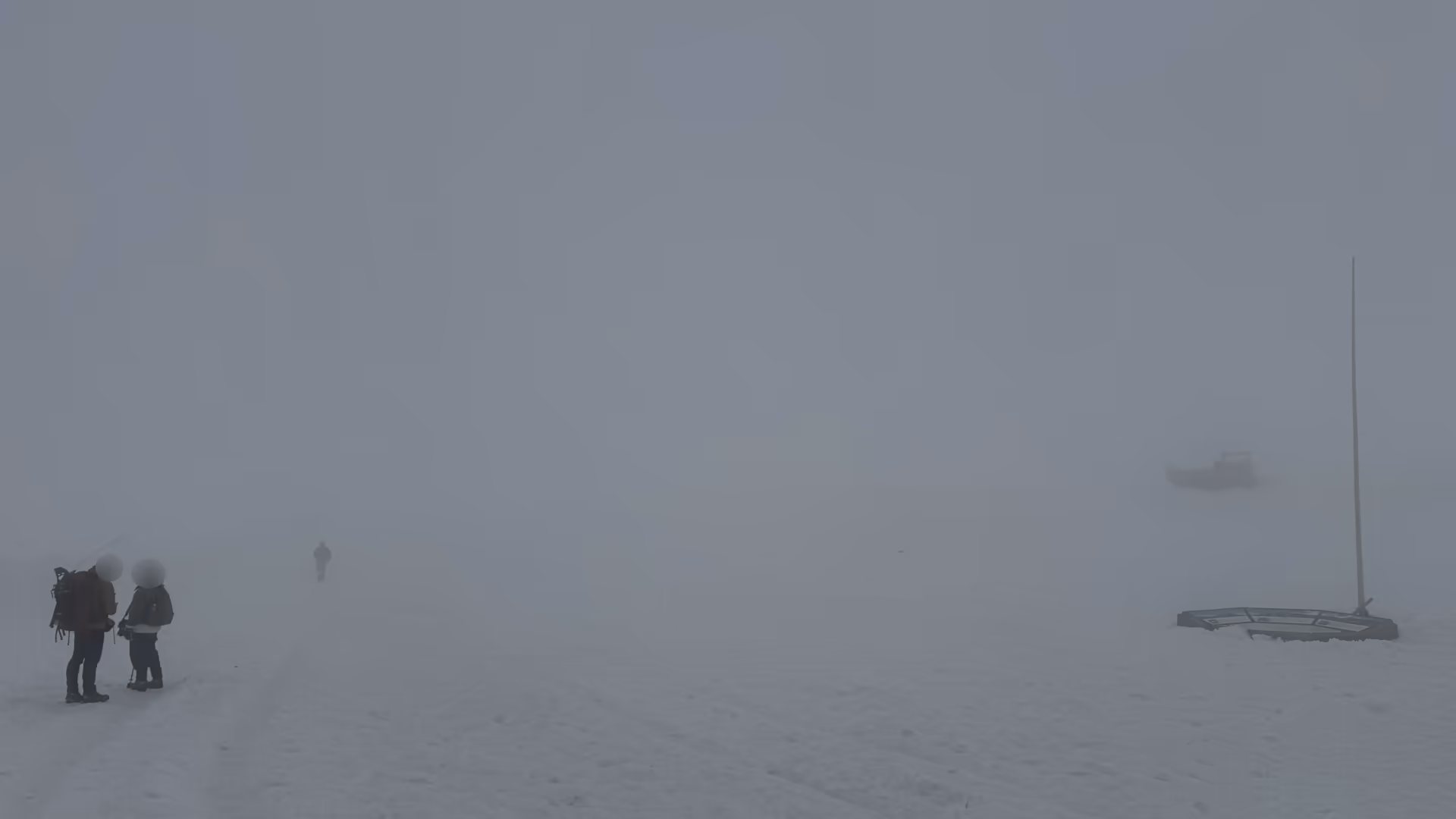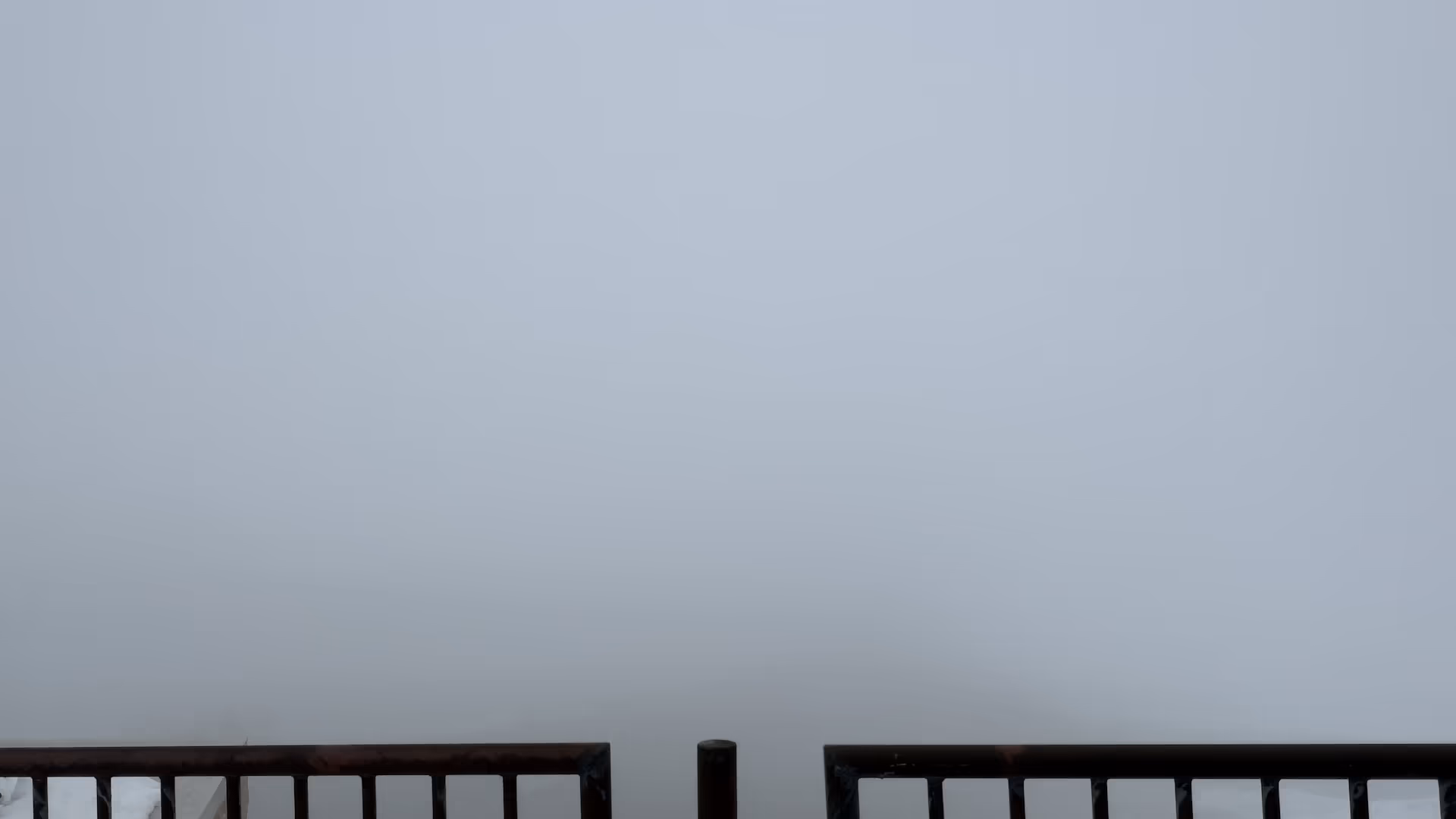 外に出ると相も変わらず霧で真っ白です。それなりに風が吹いているので、時々霧が薄くなったりします。