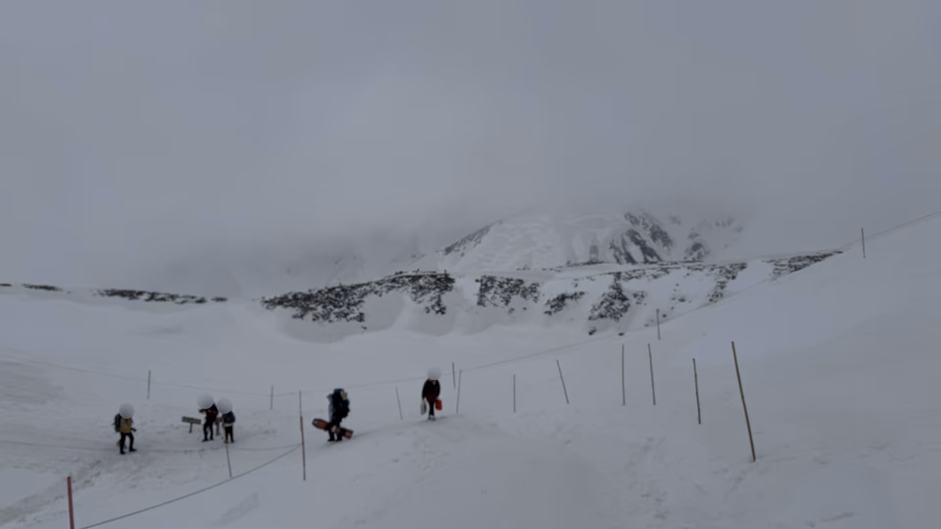 ついでに室堂山荘の方へも行ってきました。特に何かあるわけではありませんでしたが、こちらはキャタピラが通った直後だったので、非常に歩きやすいタイミングでした。