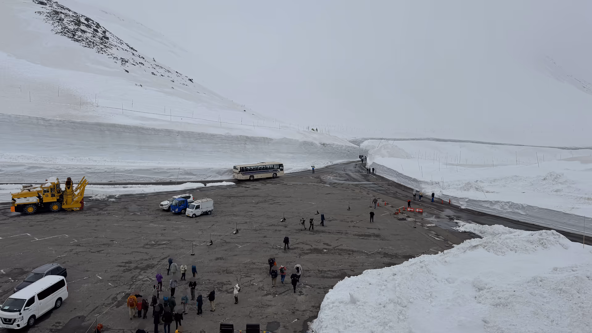 バスの中でも雪の大谷の案内がなされますが、特に目印は無いので正直どこが最高地点なのかは分かりません。