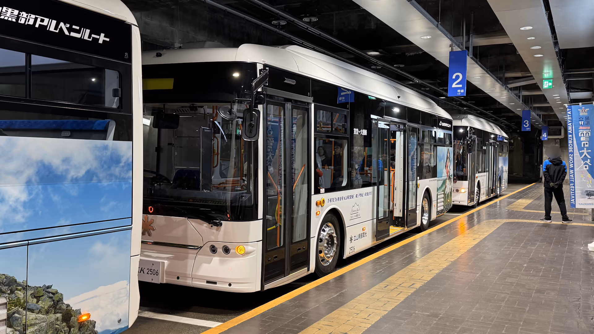 こちらも元々はトロリーバスの区間でしたが、立山トンネルよりも前に電気バスに転換されています。こちらのトンネルは幅が広く、通りやすそうです。