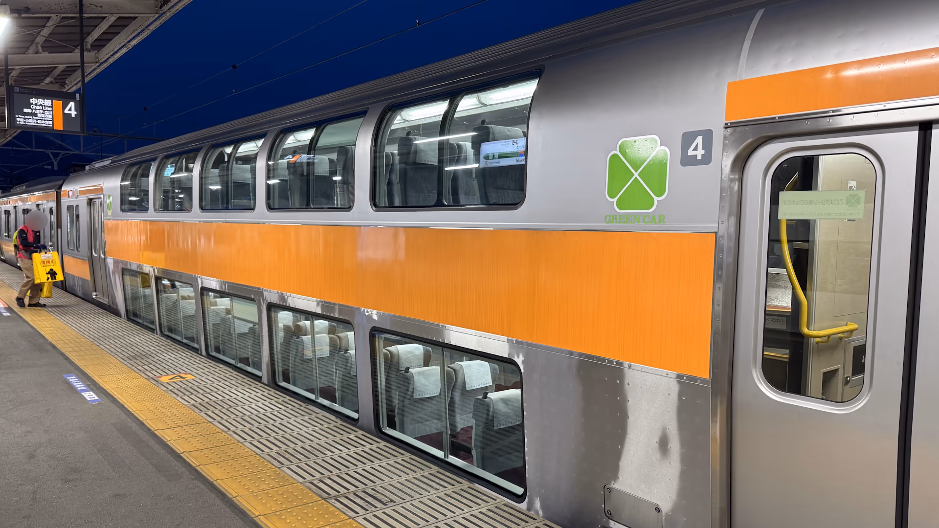 大月からは3月から正式スタートしたグリーン車に乗ってみます。中央線は他路線と比べてグリーン車の運行距離が短いので、どちらかというと行楽には不向き(特急を使ったほうが良い)で通勤向けのようです。